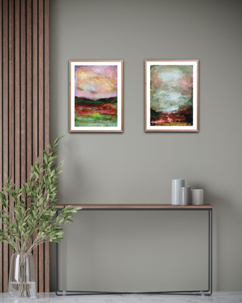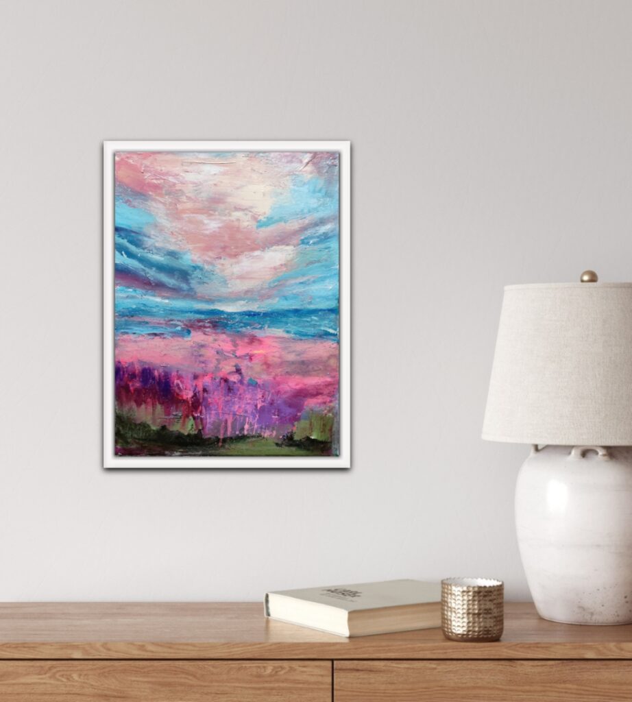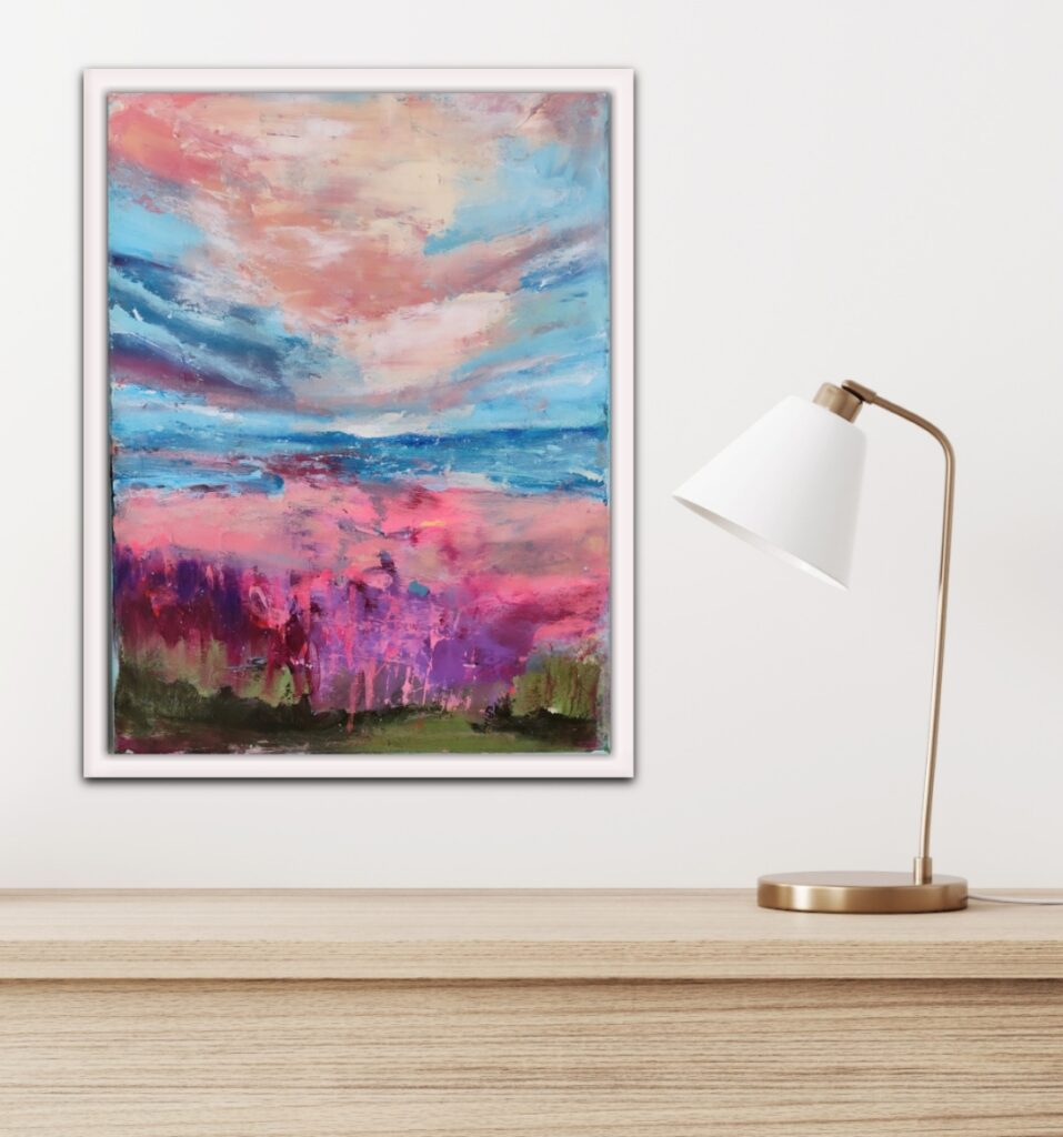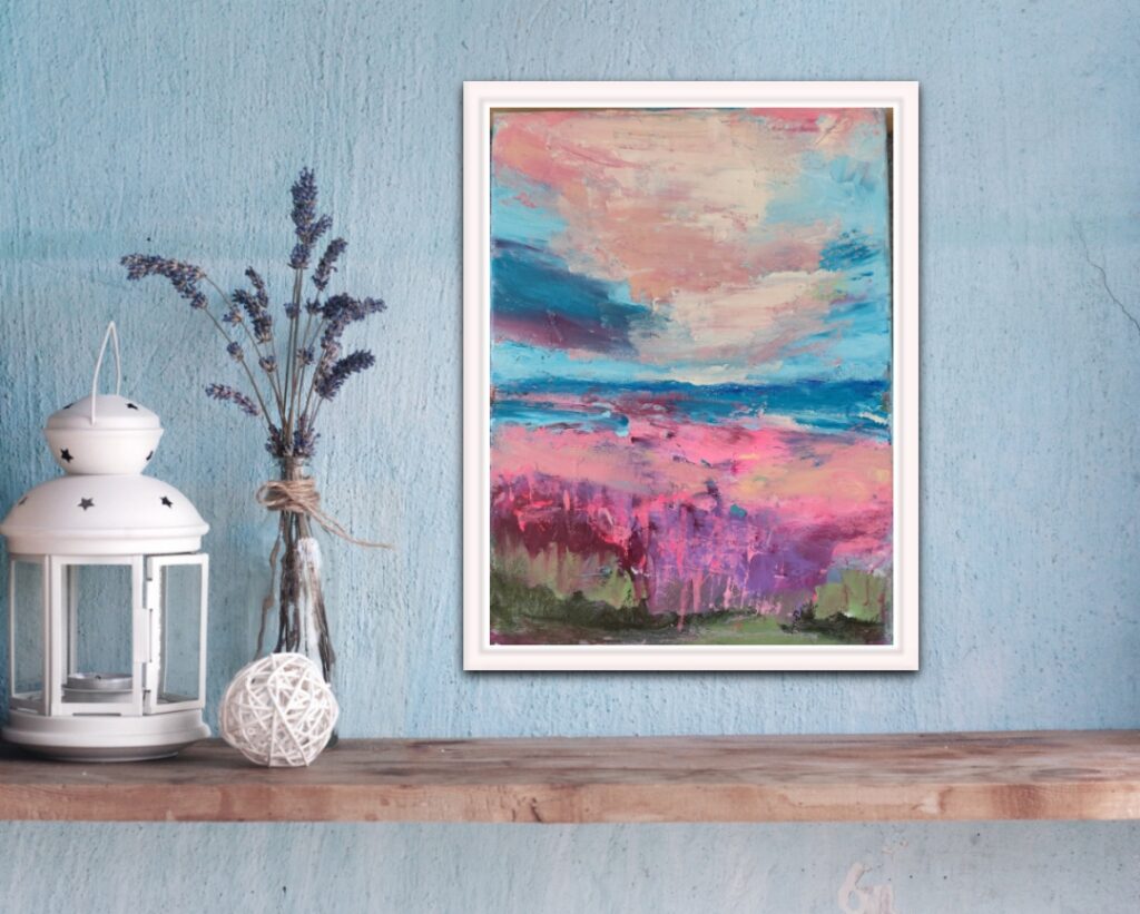 Heaven on Earth 30×40 malet på akryl papir og indrammet i trærammer med plexieglas